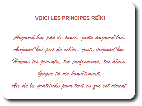 - Si par contre vous ressentez que c’est une voie de développement personnel faite pour vous – vous commencerez un jour à appliquer les 5 principes du REÏKI.